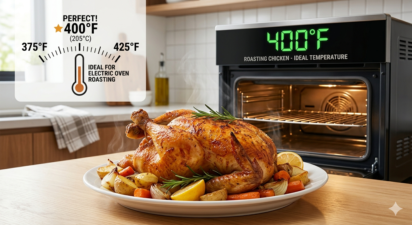 Ang kaligtasan ng pagkain ay nangangailangan ng panloob na temperatura na 165°F , anuman ang temperatura ng oven na ginamit. Habang ang pag-ihaw sa 400°F ay ang "sweet spot" para sa texture, ang temperatura ng oven ay ang sasakyan lamang upang maabot ang ligtas na panloob na target. Sa isang electric oven, dapat kang maging maingat sa malalaking ibon (mahigit sa 5 lbs); maaari silang mangailangan ng mas mababang temperatura na 375°F upang matiyak na ang sentro ay luto bago masunog ang balat.